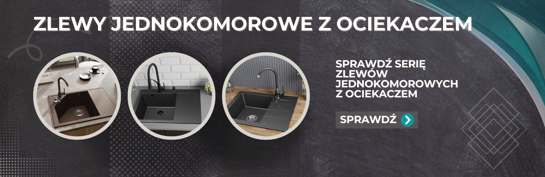 Zlewozmywak jednokomorowy z ociekaczem LOBSTER czarny metalik + bateria flex + doz